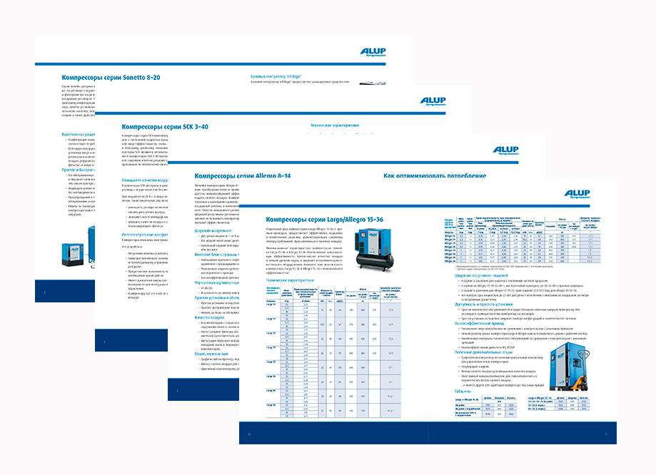 История компании началась в 1923 г. с небольшой ремонтной мастерской в г. Кёнген, где изготавливались воздушные насосы для автомобильных покрышек — от этого произошло название Auto-LUft-Pumpen. Спустя два года компания разработала первые промышленные поршневые компрессоры, а в 1980 году представила линейку винтовых компрессоров. Инновационные технологии в сочетании с приверженностью традициям способствовали быстрому росту репутации компании, и вскоре название ALUP стало синонимом первоклассного компрессорного оборудования. Сегодня ALUP Kompressoren работает в самом сердце земли Баден-Вюртемберг, где всё и началось в 1923 году.