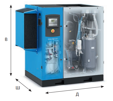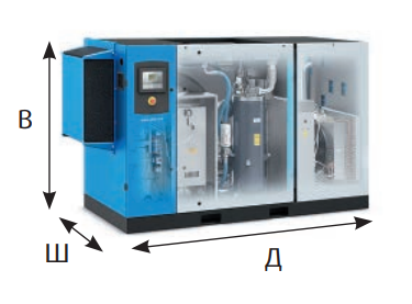 Постоянная частота вращения; Макс. рабочее давление; Производительность, м3/мин; Мощность электродвигателя, кВт; Уровень шума*, дБ(А); Масса на раме; Масса на раме осуш.; Масса на ресивере с осуш.; Диаметр выпуска на раме/на ресивере