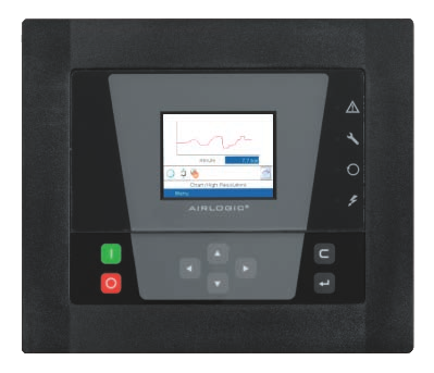- Технология встроенного инвертора обеспечивает идеальное соответствие подачи сжатого воздуха в соответствии с потребностями, что исключает потери мощности при отсутствии нагрузки.