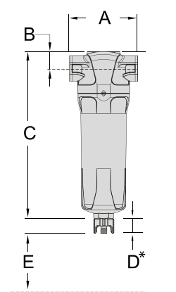 Размер фильтра; Уровень потока/размер, м3/час; Уровень потока/размер, л/мин; Уровень потока/размер, л/мин; Присоед. размер; Габаритные размеры (мм), А; Габаритные размеры (мм), В; Габаритные размеры (мм), С; Габаритные размеры (мм), Е; Вес (кг); Модель фильтрующего элемента