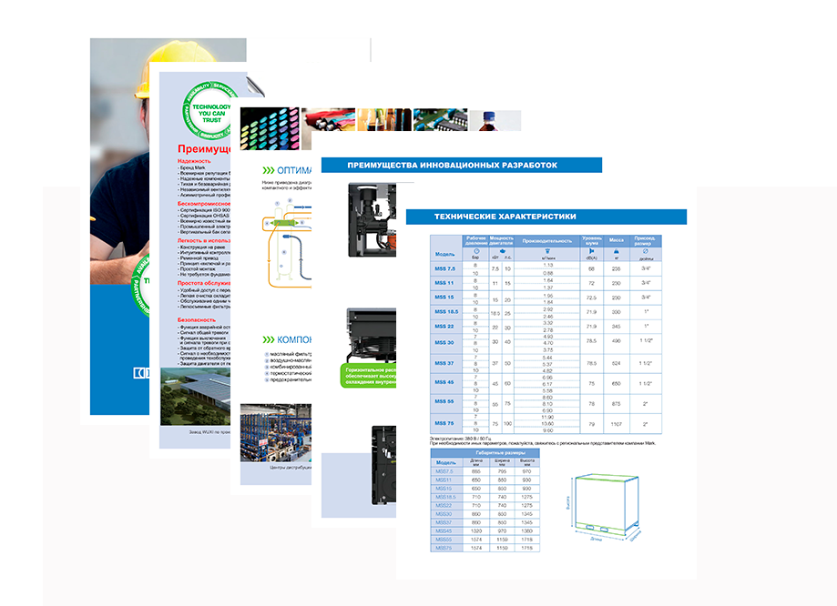 Модель; Макс. рабочее давление, бар; Производительность, м3/мин; Номин. мощность, кВт; Электропитание, В/фаза/Гц; Штуцер, дюймы; Габариты , ДхШхВ; Масса, кг; Хладагент